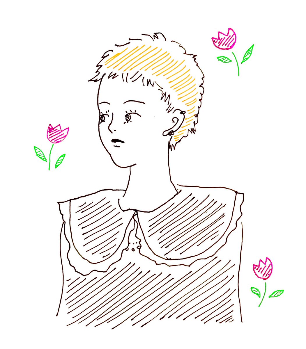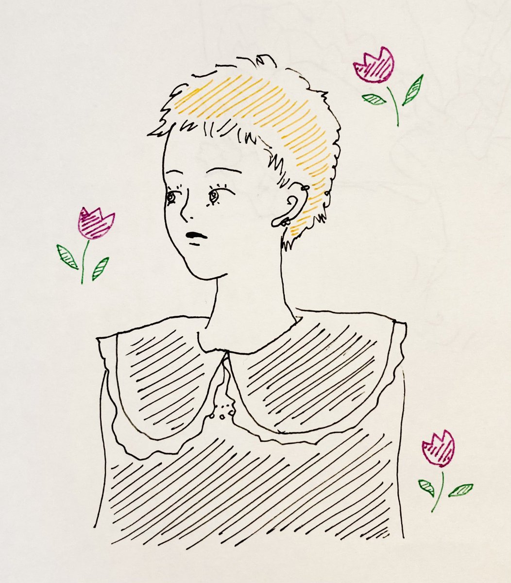 思い入れが強過ぎてなかなかうまくいかない金髪ベリーショート💇♀️ #イラスト #線画 #アナログ #アナログ手描き #ペン画 #イラスト好きな人と繋がりたい #ファッションイラスト #女の子イラスト #人物画 #ミツバチ #art #ilustracion #bee