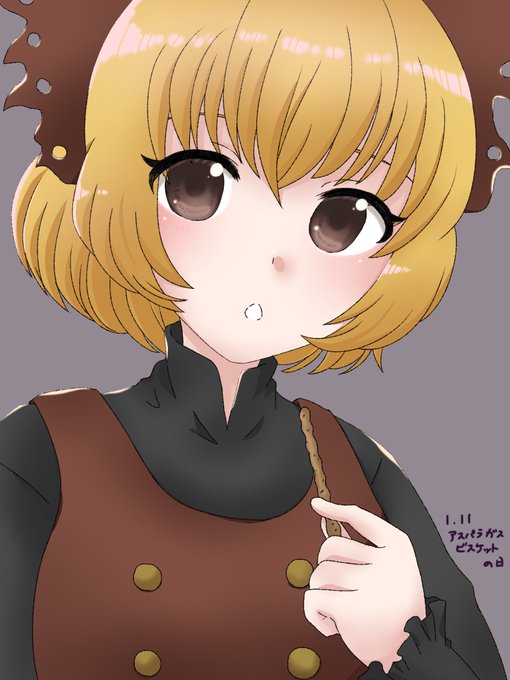 今日は何の日? 今日はアスパラガスビスケットの日だそうです 個人的好きなお菓子ランキング上位に入るので描かせて頂きました 今回は描きたかったのでヤマメちゃんです #東方Project #黒谷ヤマメ #アスパラガスビスケットの日 #絵描きさんと繋がりたい