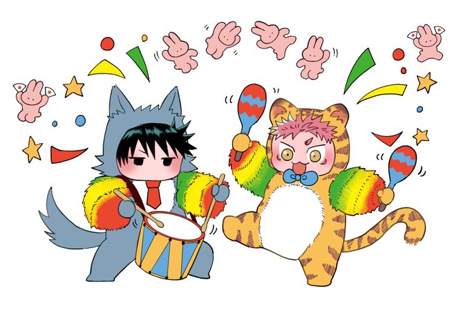 ⚠️ホンスィネタ 互いの感想を口にしないで見つめ合って照れるめぐゆじ。顔の模様はただのメイクだぜ😜