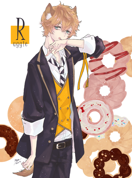 ドーナツ好きなラギー君がかわいい ❤️🧡💛🍩🍩🍩💛🧡❤️ #ツイステファンアート