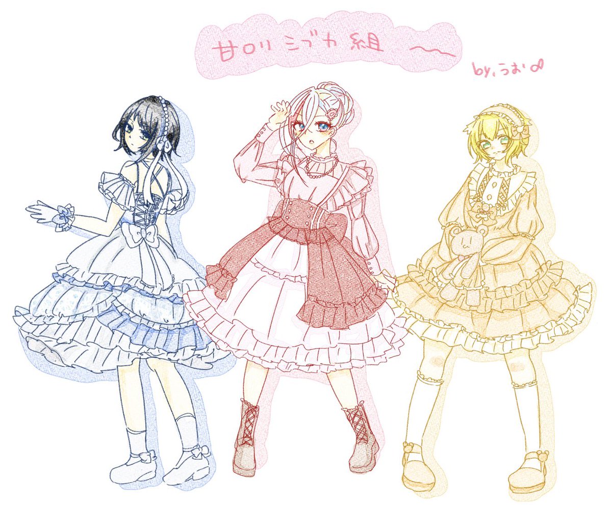 並べるとかわいい 火凛とルキアは動きにくいってすぐ脱ぐとこまでがセット 元ネタ:通勤にブドウレンコンさん (@rnkn_bacteria ) #電音部美術部 #甘ロリシブヤ組