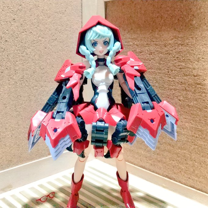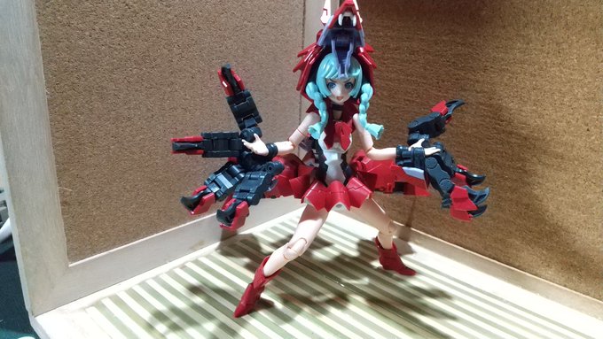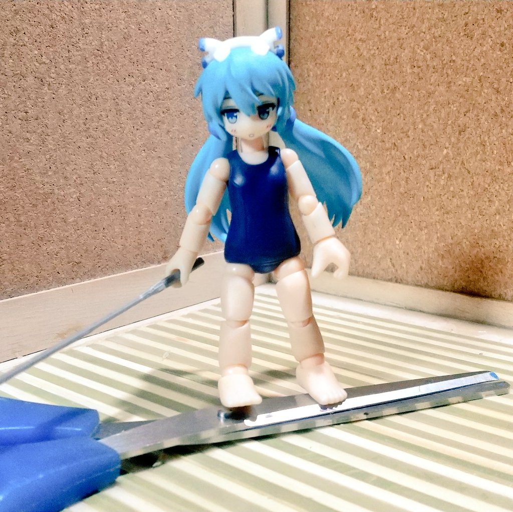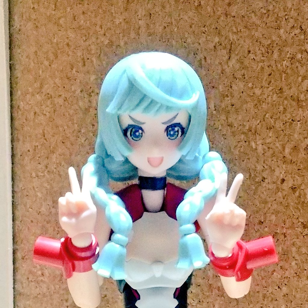 「いえーい」ぴすぴす 水まどかなら膝立ちで乗れるな。 足裏を良い感じに隠せば収まりは良くなりそう #ブイトール #コトブキヤ #創彩写真部