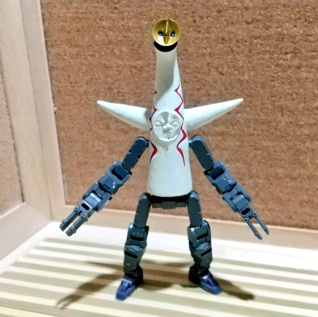 #メガミデバイス めちゃめちゃ良い! (*´ω`*) 太眉三つ編みの娘とか最高だよね この柱っぽいパーツで再現したケープ、他に見覚えある気がするなーって悩んでたが、やっと思い出せた。 王の柱「キング・ザメク」だな!