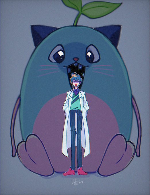 9 55 #まめねことレオス 線画練習で描いたまめねこと博士! 21/08/10 12:51