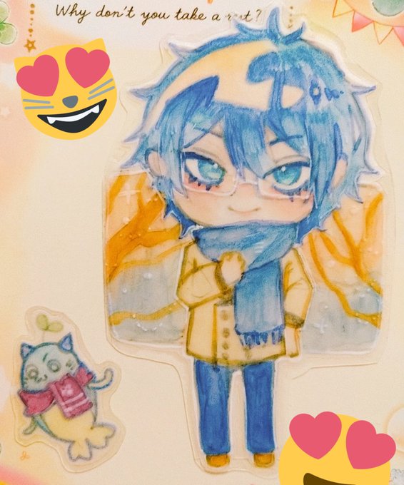 今月のボイス、金欠で買えないので自作シールを作って我慢します😭かわいくできた😭 #まめねことレオス