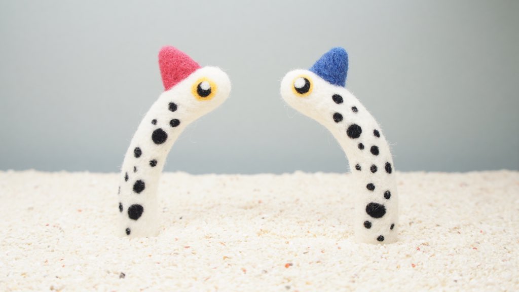 おはようございます〜(^^) 娘の昼寝が短すぎてなかなか制作できてません。しょんぼり。 仲間増えてませんが、minneぜひご覧ください〜(^^) minne.com/@uozanofutari #チンアナゴ #羊毛フェルト #minne #minneで販売中