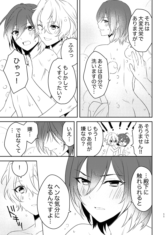 15 69 明日のブリデの新刊です~~! 「癒してあげるね」 A5/P20/全年齢/イベント頒布400円 お風呂とベッドでいちゃいちゃ裸のお付き合いをするひよ茨の話です。 pixiv.net/artworks/10367… pixivのほうにサンプルもう1枚載ってます。よかったら見てみてください~! 22/12/17 12:56