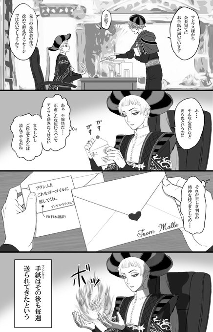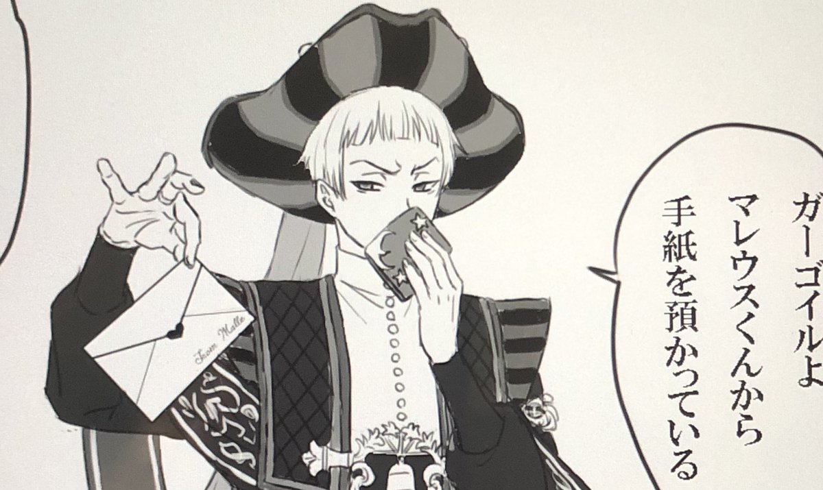 #ツイステファンアート #twstファンアート 【手紙】 マレウス🐉/ロロ🔔 交流会から数日後のお話。 ロロはマレを相変わらず忌々しく思い 副会長はあれからずっと マレウス〈様〉呼びだったら良い。 (🎭セベクパソスト見てほしい) ⚠️グロマスのネタバレ要素有り