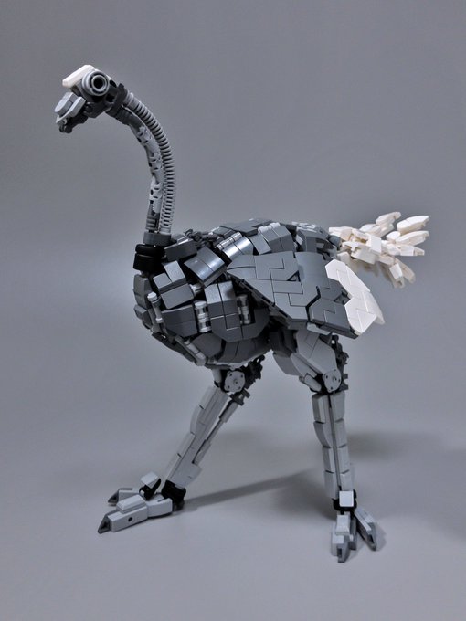 レゴでダチョウメカを作ったよ。 ダチョウは時速60kmで長時間走る体力、数km先も見れる眼、ケガしても病気にならない免疫力という最強の肉体を持つ。 が、頭が壊滅的に悪く、さっきまでやってた事や家族の事等すぐに忘れる。背中に人が乗ると暴れるが、即忘れそのまま過ごしたり割と重症。 #lego #レゴ