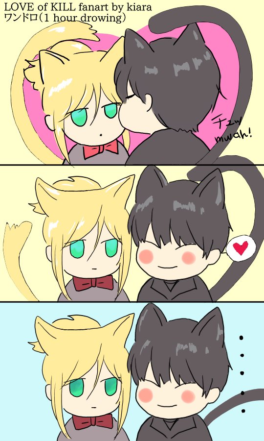 #殺し愛 ファンアート アニメ第7話が楽しみです!#LOVEofKILL 살애 #イラスト #猫の日 2022.2.22 #にゃんにゃんにゃんの日 戦うネコのニャトー! 戦闘中は尻尾の鈴はつけません(多分大事だからポケットに入れてる)