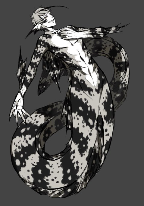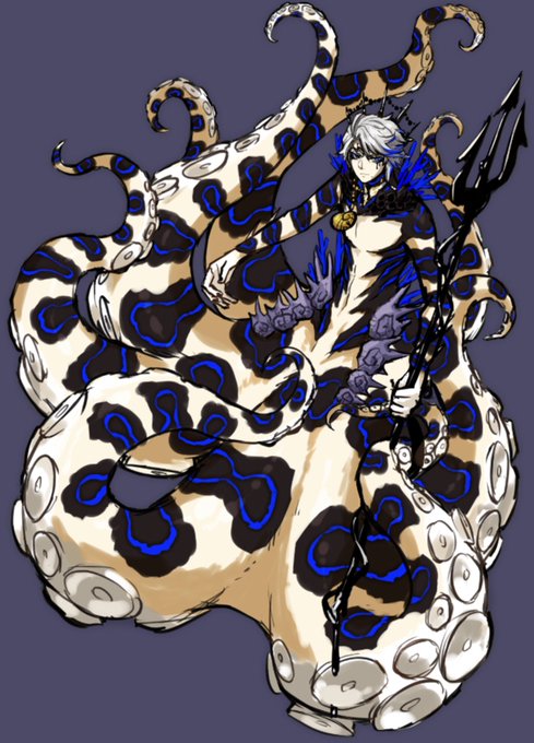 #twst夏の人魚祭り ※集合体恐怖症の方やぶつぶつした模様が苦手な方はご注意下さい! 最近マイブームの、人魚オクタと実在するタコやウツボの模様のコラボシリーズです!1枚目から ヒョウモンダコ トラウツボ ゼブラウツボ クモウツボ