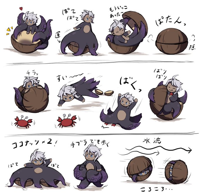 ココナッツオクトパス(メジロダコ)の生態が面白過ぎたので稚魚タコアズで描いた!!ココナッツが落ちてる場所だとココナッツ使うけど、貝殻や人間が捨てたゴミ等、身を隠せそうな物はなんでも使うし持ち運ぶらしい!! 信じられないけど信じるしか無くなる動画はこちら↓ youtu.be/Y2EboVOcikI