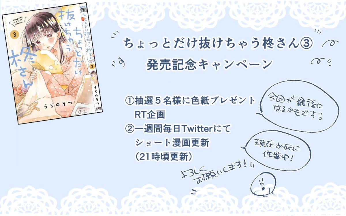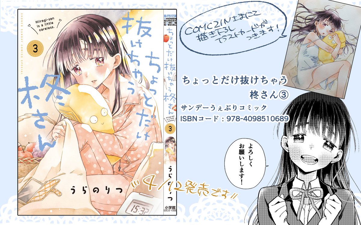 #ちょっとだけ抜けちゃう柊さん 3巻が4/12に発売されます! 特典はCOMICZIN様にてイラストカードがつきます! そして3巻発売キャンペーンをさせていただきます〜!どうぞよろしくお願いいたします!
