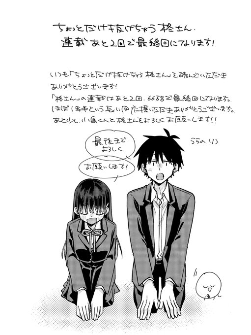 70. 最終回 / ちょっとだけ抜けちゃう柊さん - うらのりつ | サンデーうぇぶり sunday-webry.com/episode/316190… ちょっとだけぬけちゃう柊さん更新されております! 最終回、どうぞよろしくお願いします!!