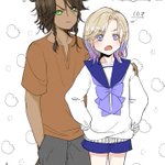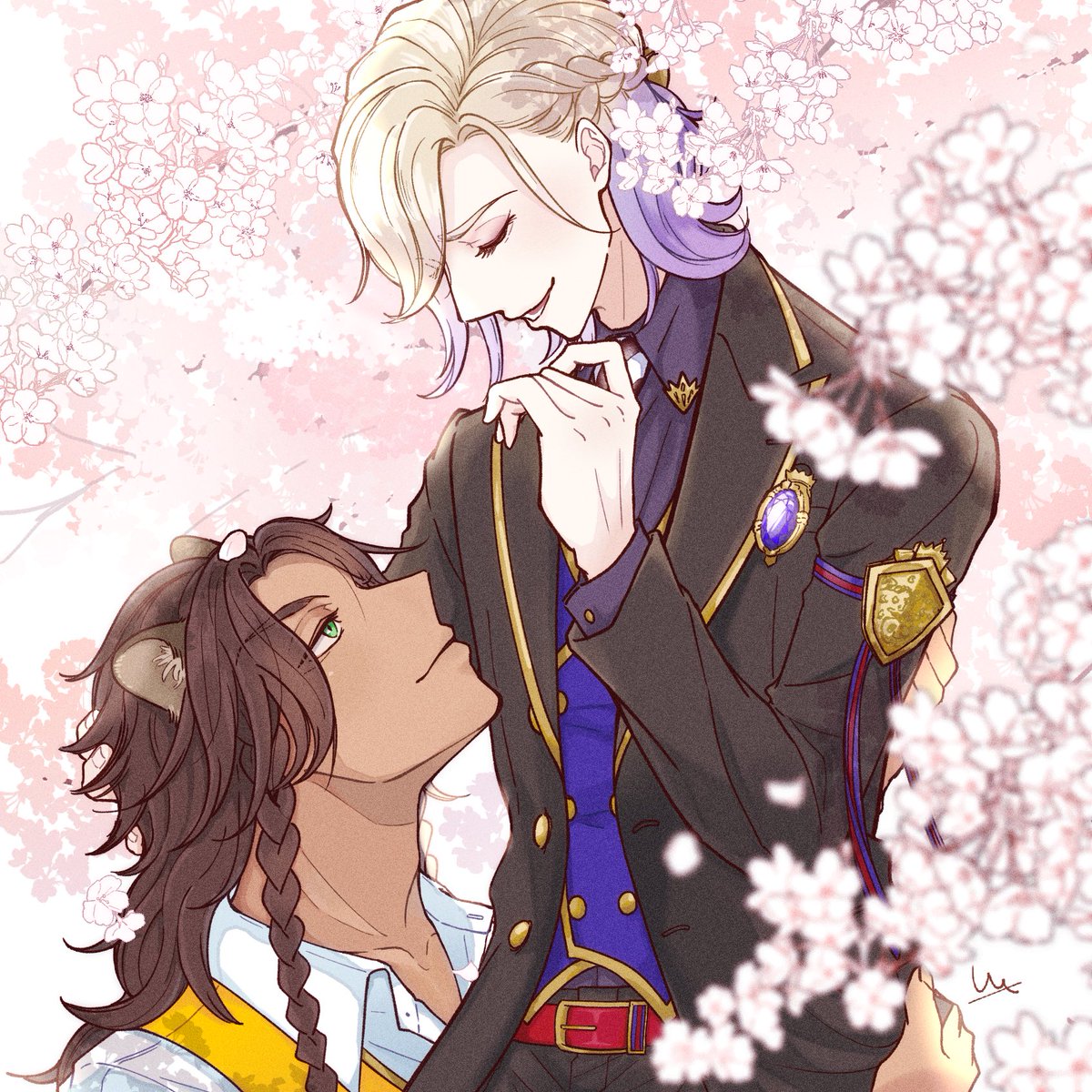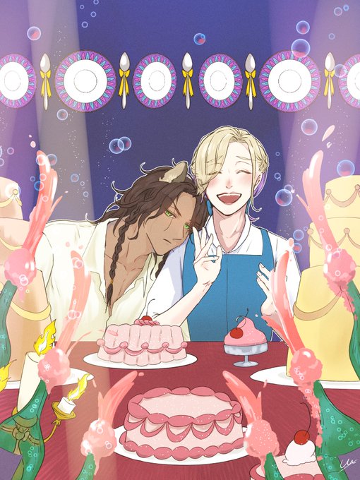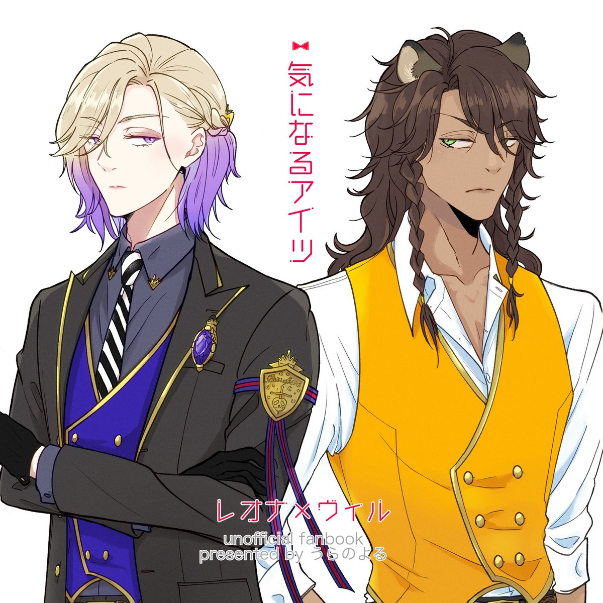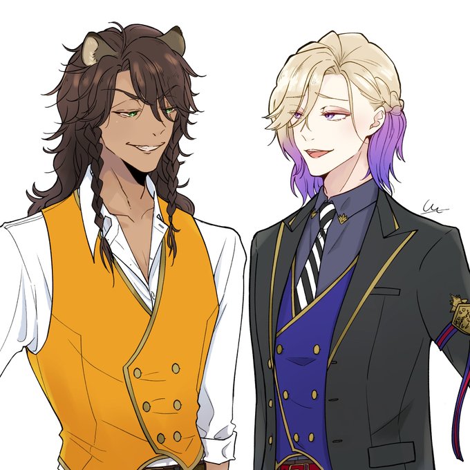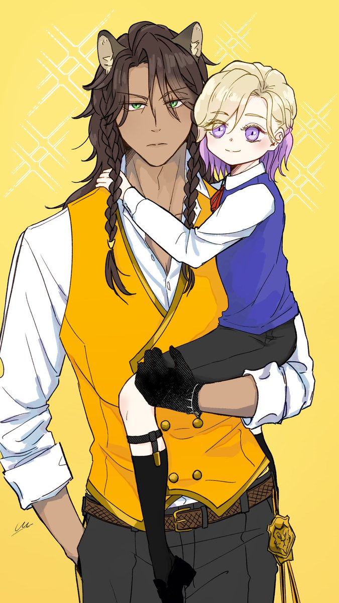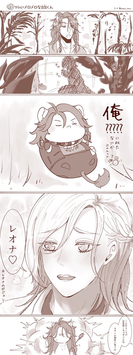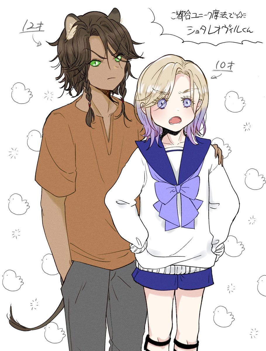 #レオヴィル深夜のワンドロ・ワンライショー 1ミリもワンドロではないのですがせっかくなので!!🙏 お題『寅』お借りします!虎柄T😌 レオヴィルくん🦁👑 お雑煮のお餅をうまくかみ切れない👑くんと、うまくのみ込めない🦁です🤣 あけましておめでとうございます!!🎍✨