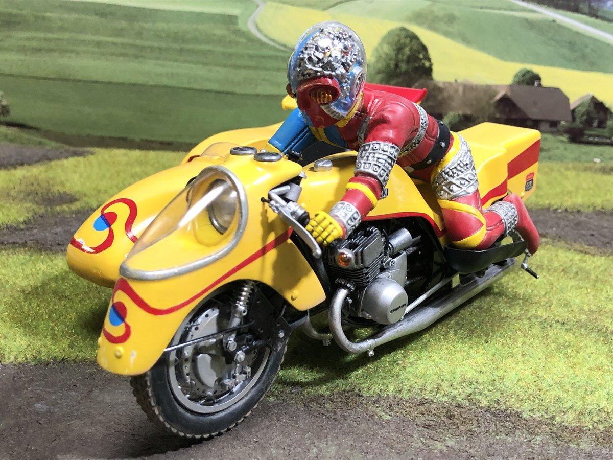 #ゴールデンウィークSNS展覧会2022 このタグも付けとこう。製作期間1.5か月。本日完成。 オークス1/12キカイダー サイドマシーン いや〜、素晴らしいキットだった!^ ^ オマケはコトブキヤの1号と!