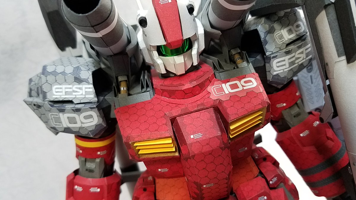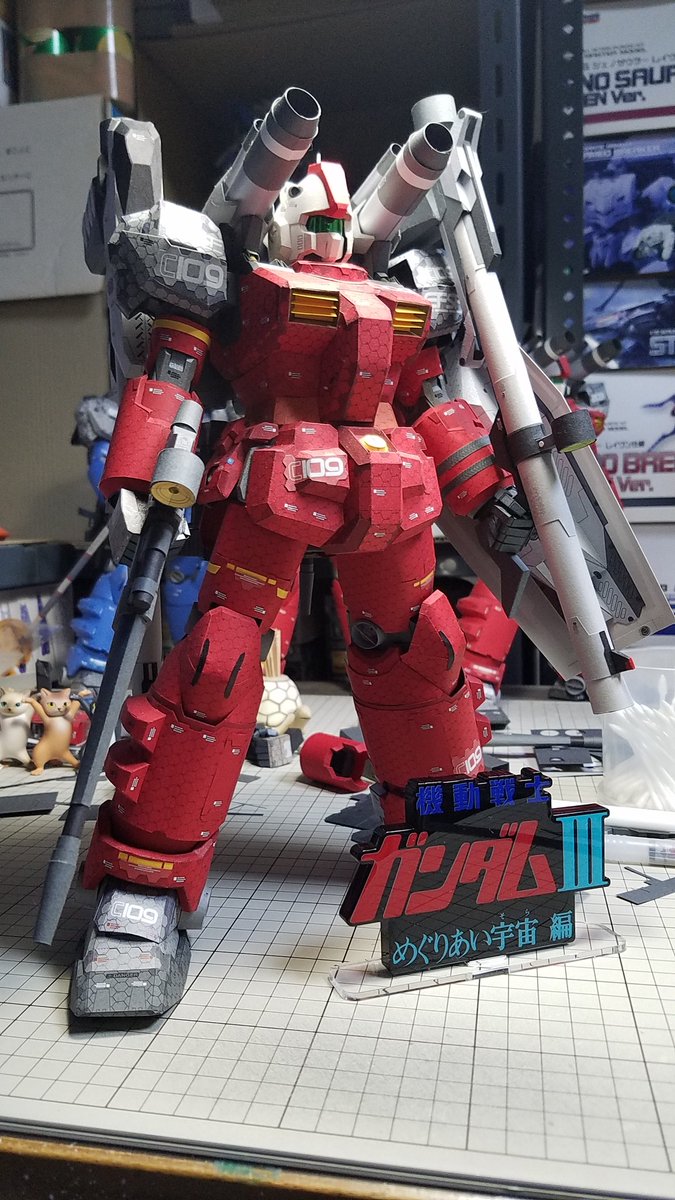 3 18 #ガンペパ #ガンキャノン #ペーパークラフト MSVになるIF機体 ガンキャノン スレッガー機 【最終決戦ア・バオア・クー仕様】 完成です 左ライフルに右はビームスピア仕様 理想に仕上がったです さて次は本命 108&109の最終決戦ver.です スレッガー機は週末写真撮ります 21/07/15 21:11