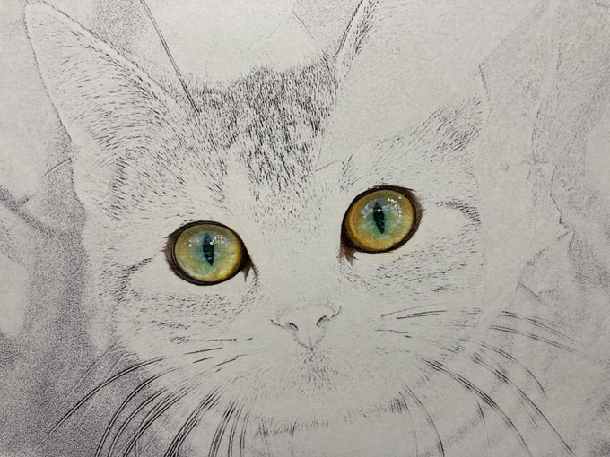 #色鉛筆 #猫 色鉛筆で描いている猫🐈です。 私が担当している #みんなの色鉛筆画教室 という番組と並行して描いています。 絵のモデルは、実家で飼っている愛猫のメイ♀です。 今日は、これから、ダイヤ💎を描き始めたいと思います。 初めての挑戦ですが、こちらも、完成したらアップします!
