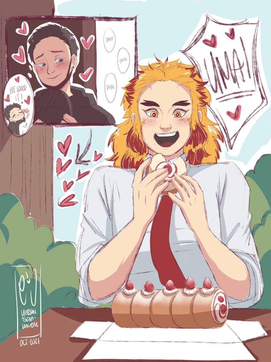 HC: Rengoku adora todos los postres que le llegan "anónimamente" a su escuela. Y para Akaza, el mejor pago por ello, es escuchar su felicidad al comer. #rengokukyojuro #Akaza #AkaRen #RenAka #akarenaka #au
