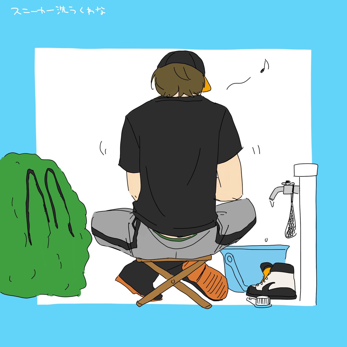 22 63 しばらく出陣も遠征もないお天気の日にスニーカー洗ってたらいいなの絵 23/05/30 15:36