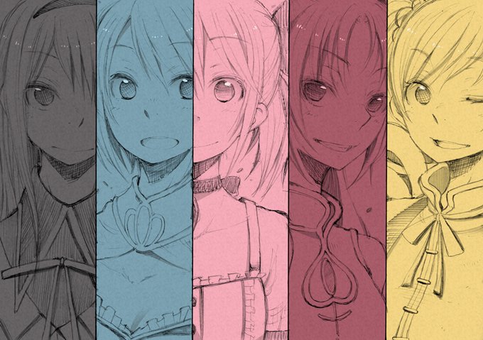 15 37 #魔法少女まどかマギカ 見滝原の中学生5人(過去絵) 23/01/29 13:54