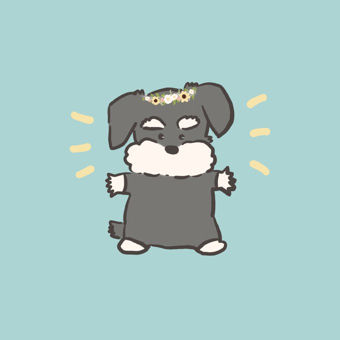 花冠を自慢するシュナちゃん🌼 #絵柄が好みって人にフォローされたい #ゆるいイラスト #イラスト #ミニチュアシュナウザー