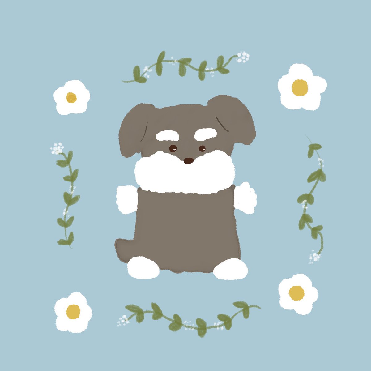 5 62 花冠を自慢するシュナちゃん🌼 #絵柄が好みって人にフォローされたい #ゆるいイラスト #イラスト #ミニチュアシュナウザー 22/07/04 18:51