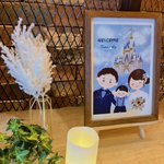1 9 今日は同僚の結婚式でした👰♀️🤵♂️ ご依頼頂いたウェルカムボード 素敵に飾っていただいて とても嬉しかったです☺️✨ いつまでもお幸せにෆෆ #イラスト #ウェルカムボード 22/11/27 18:35