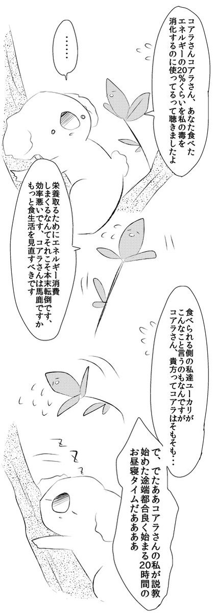 コアラとユーカリ…やっぱ良いんだよな…って思った都度引用する太古の一次創作 コアラ×ユーカリ漫画 | ムツ #pixiv pixiv.net/artworks/28074…