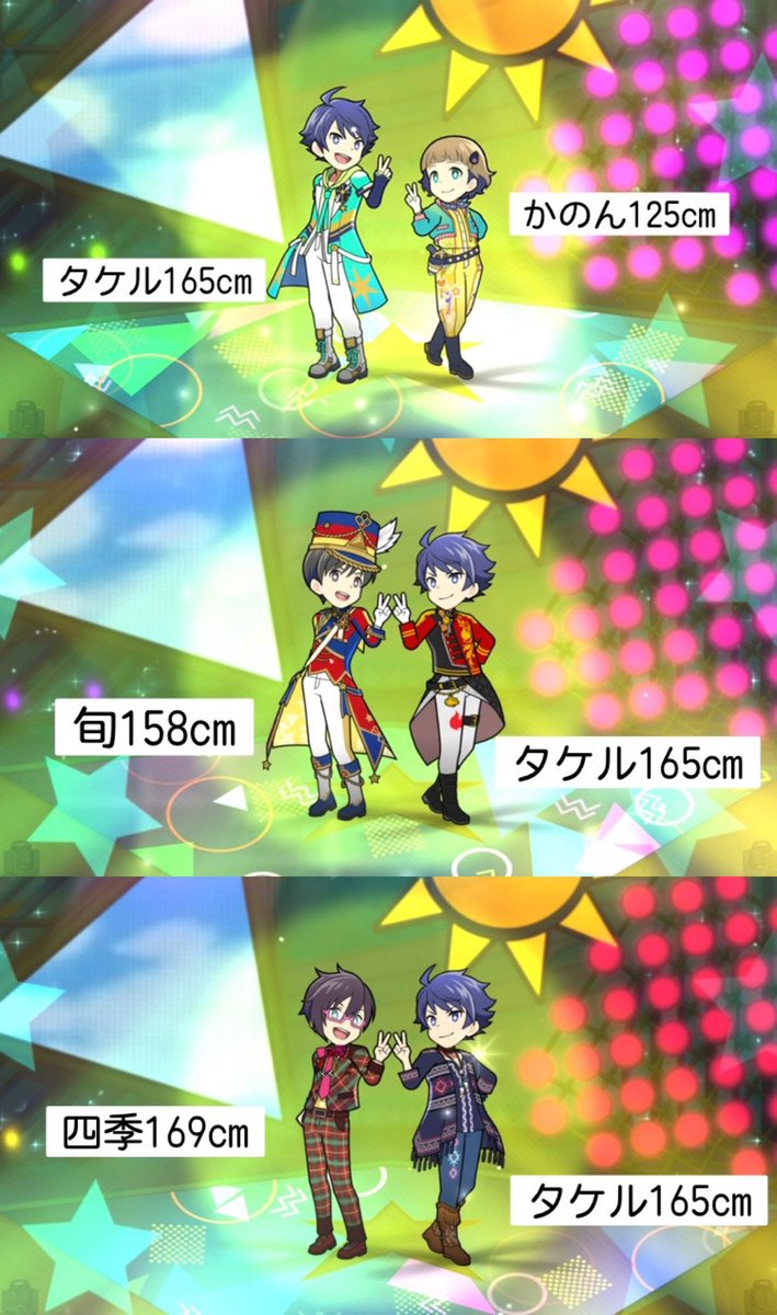 52 103 既出かもだけど、VIVAのおかげで2DMVでの身長差がはっきり分かるようになったので調べてみたら、2Dでの身長は4パターンに分かれるぽい ・157以下(もふ3人のみ) ・158〜169 ・170〜181 ・182以上 22/11/04 08:49