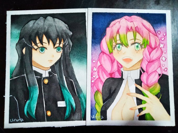 A6 Watercolor Painting 🎨🖌️ Tokito Muichirou and Kanroji Mitsuri 😚 #鬼滅の刃 #DemonSlayer #MitsuriKanroji #watercolor #artidn #イラスト