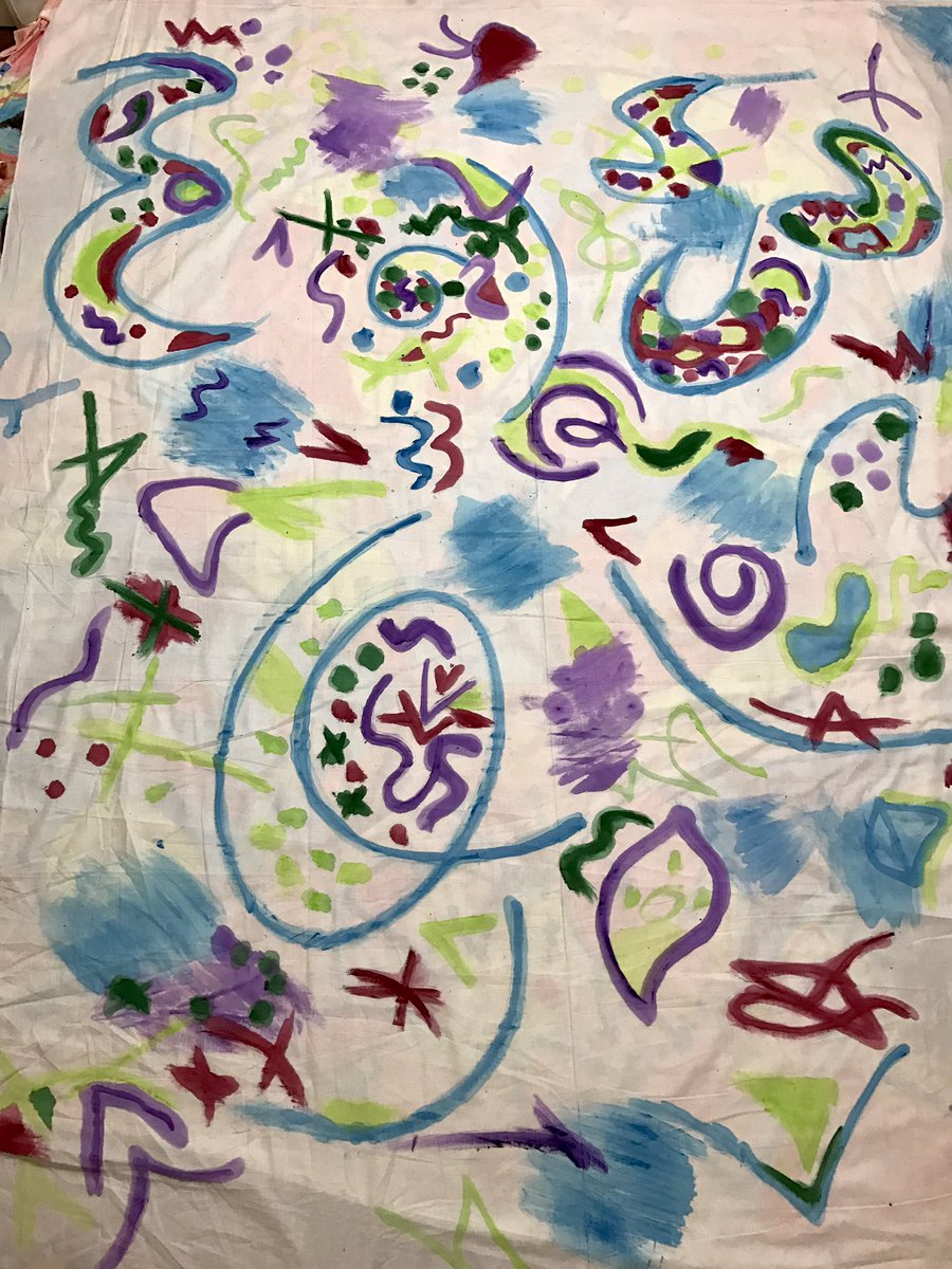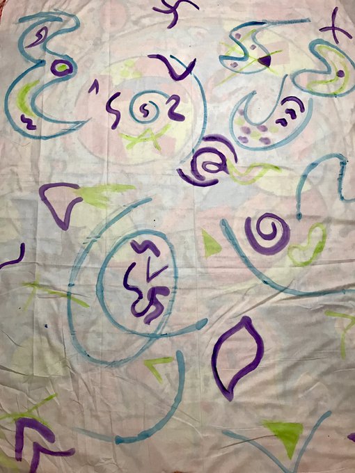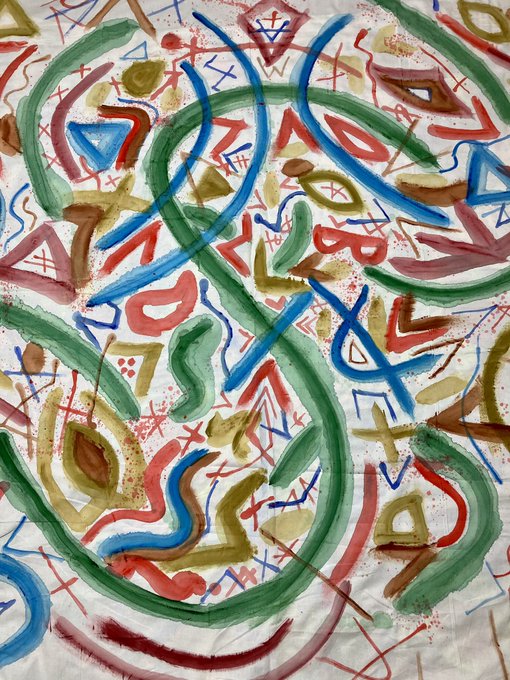 @toshikusobbu さんよりバトンを頂きました。 #アートトレイン 綿布にアクリル絵の具類。 にじみ澄んだ明朗鮮やかな色彩をひねりと躍動感のあるムーブでドローイング。 公募展用なら最大227×180cm (F150号) twitter.com/toshikusobbu/s…
