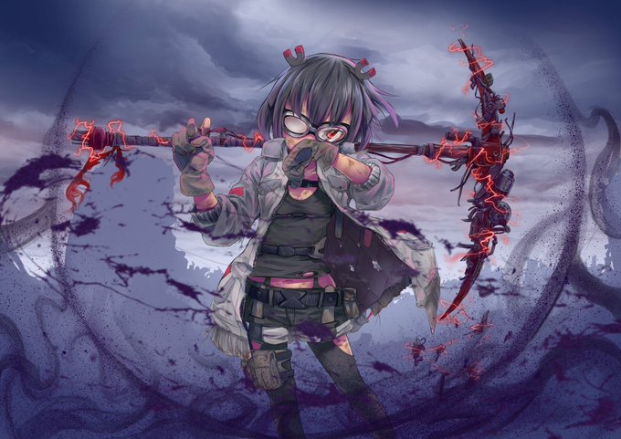 #しまどりる企画室 #磁っとみて 創作意欲掻き立てられたんで、バトル前のプラス磁富描きました。磁富と言えばピッケル。なので、対極の磁力を流し込んで砂鉄ディズムを無力化する武器として使えないかと妄想。どっすかね?