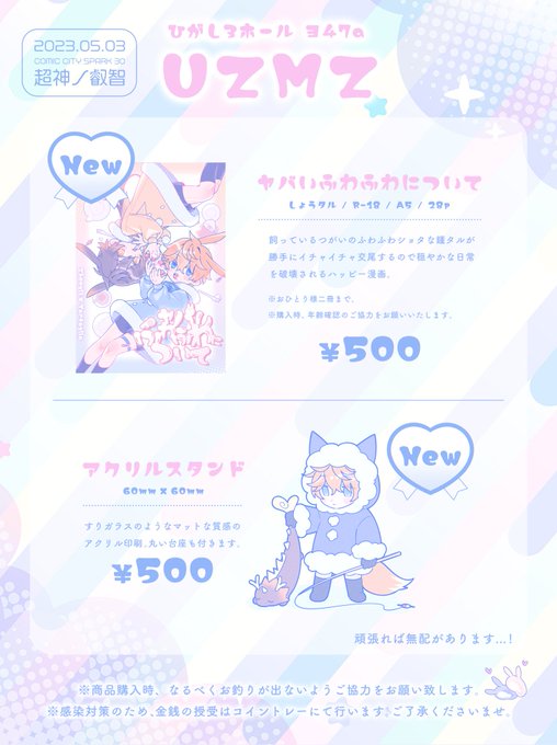 20 71 【5/3超神ノ叡智2023】お品書き 東3 ヨ47a UZMZにて頒布 鍾タルです ちなみに無配はありません pixiv.net/artworks/10767… 23/04/30 20:21