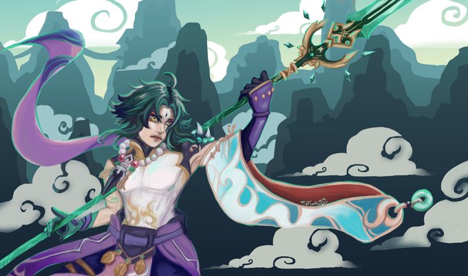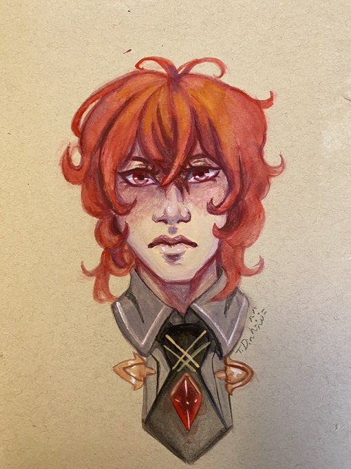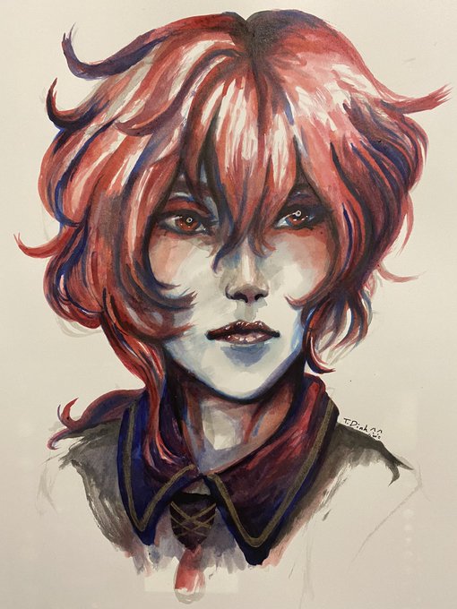 Here is my gouache painting of Childe!! When I tried to take the tape off, it tore up the paper pretty badly and I think it looked better with the tape anyways. #artistsontwitter #gouache #illustration #原神 #artwork #GenshinImpact #genshinimpactfanart #childe