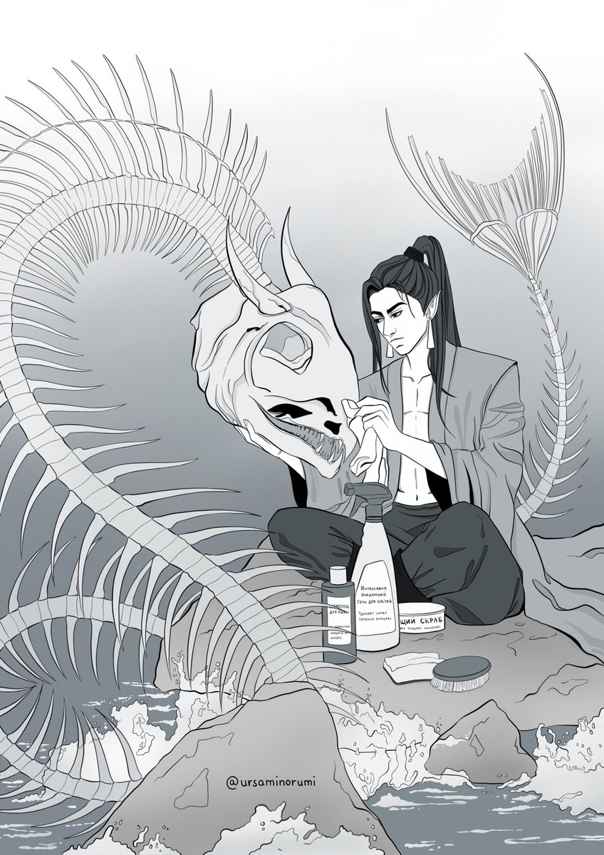 банный день в Чёрных водах, когда Хэ Сюань чистит косточки карасикам идея принадлежит @hungryfishxuan #HeavenOfficialsBlessing #TGCF #TianGuanCiFu #hexuan #inktobertgcf #inktober2021