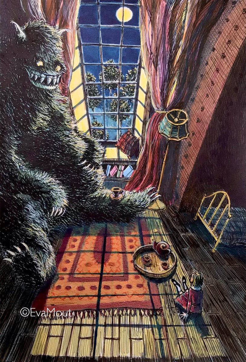 ‘Tea Time’ Ink on paper, A4 Available as original or as a high quality print ursusart.studio #horrorart #darkart #illustrationart #coverart #monster #horrorbook #art #ArtistOnTwitter #horror #Inktober #halloween