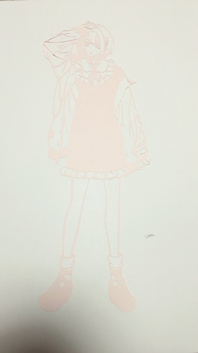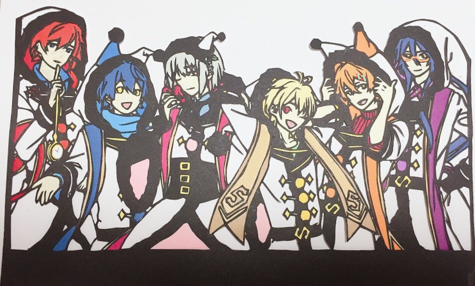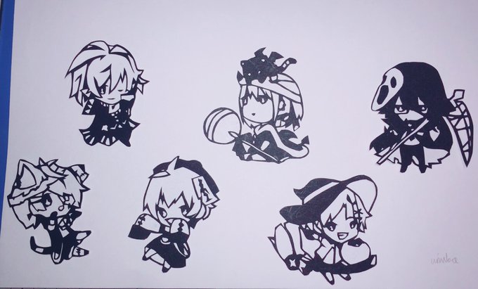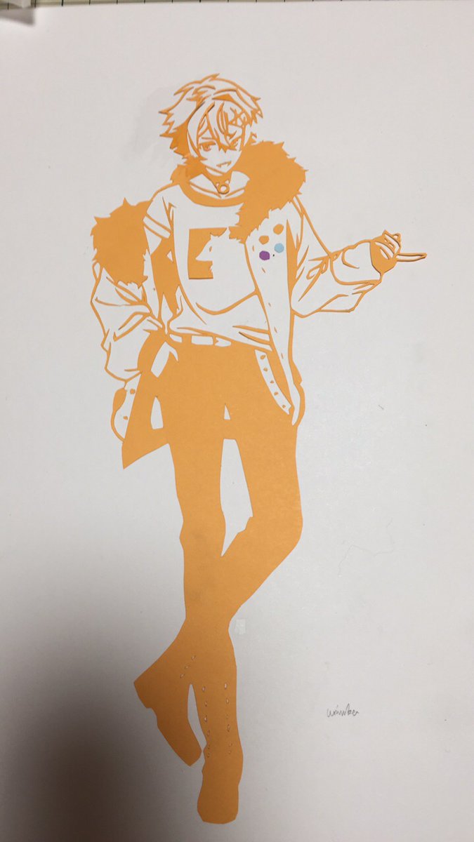 🎃👻trick and treat👻🎃 お菓子くれても悪戯するぞ #みなみにやれっていわれました #コハちゃん描いたよ #絵みせにゃ #国立カレン美術館 #雷神図屏風 (切り絵です) (ツリーに額縁に入れたのもあり)