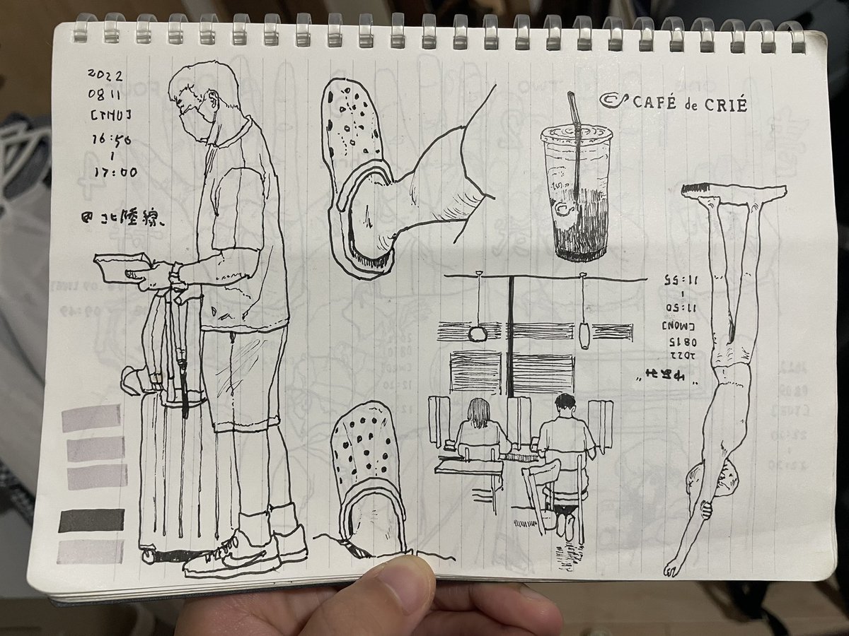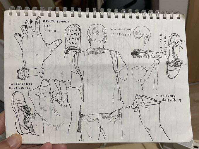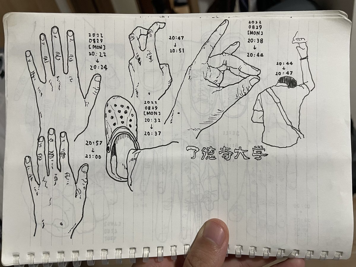 6 48 クロックスと手の甲描くのが好きすぎる #電車内スケッチ #スケッチ #お絵描き 22/08/29 23:55