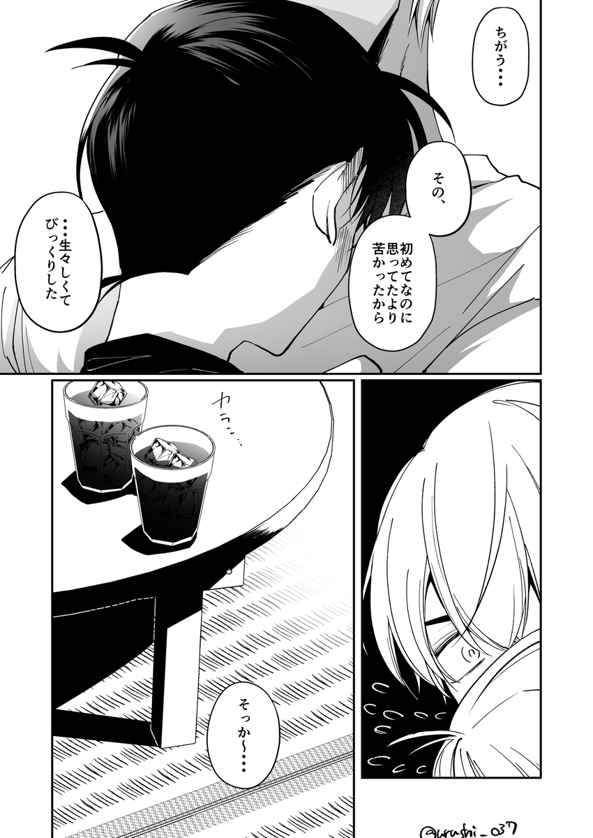 118 947 お題:アイスコーヒー CP:降新 作画も投稿も大遅刻だけど、折角描いたので置いていきます 付き合って初めてのってかんじです #降新安コ版深夜の真剣創作60分一本勝負 20/08/31 18:47