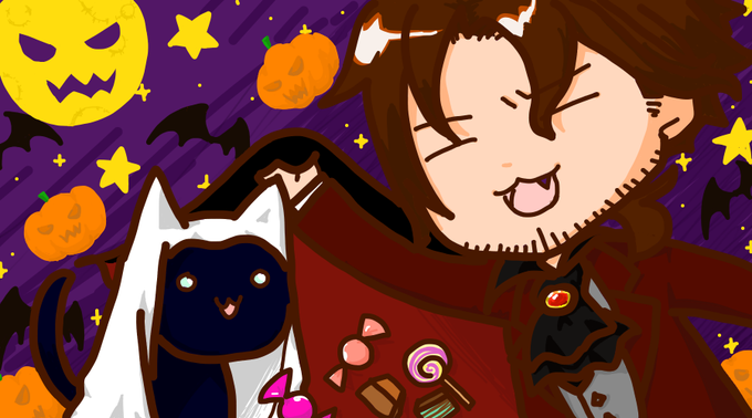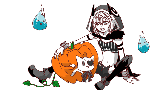 屍鬼にゃんとオモチちゃんとファントム的ななにかと旬のカボチャ #ファントムアート