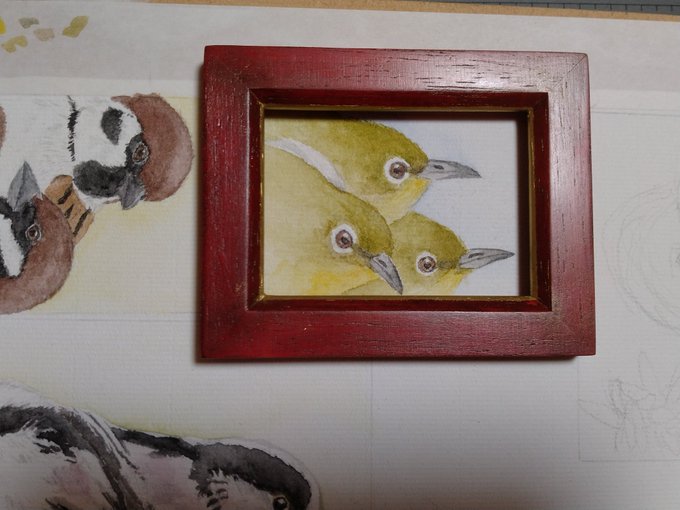 間に合ったからこの子らも送り出したやで。(額縁魔改造は間に合わんかったやで😅) 大阪緑橋のアトリエキプリスさん @Atelier_cypris の #チュン展 は3月4日〜9日までやで。オンラインストアもあるやで🐤 #水彩 #顔彩 #アナログ画 #チュン活 #展覧会 #大阪 twitter.com/Atelier_cypris…
