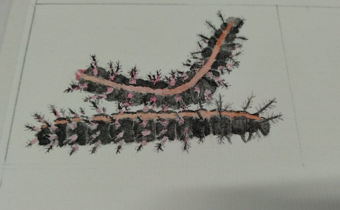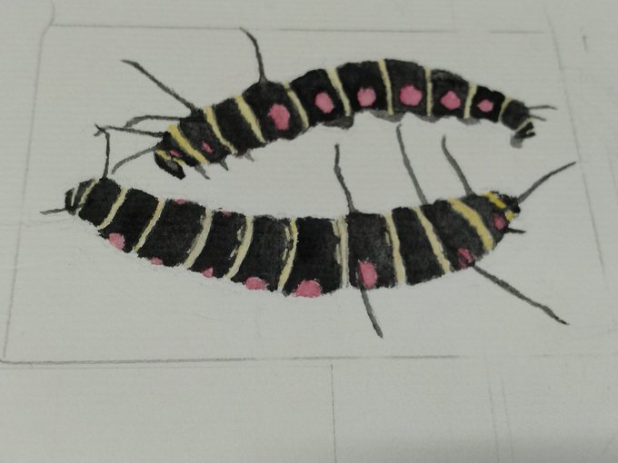 ひらパーで見た記念(?) #水彩 #顔彩 #アナログ絵 #芋活 #イモムシ