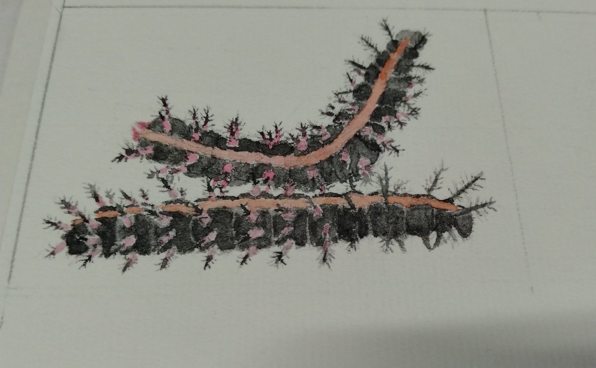 ツマヒョウさんのトゲトゲをツンツンしたい🐛まだ飼ったことないから今年は…って毎年言うとる。 #水彩 #顔彩 #アナログ絵 #芋活