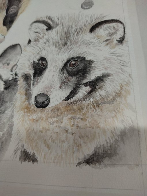 タヌキを描くとイッヌっぽくなる呪い…気にしすぎかなあ🐶3回目はうまくいきそう。ボツを供養🙏 #水彩 #顔彩 #アナログ絵