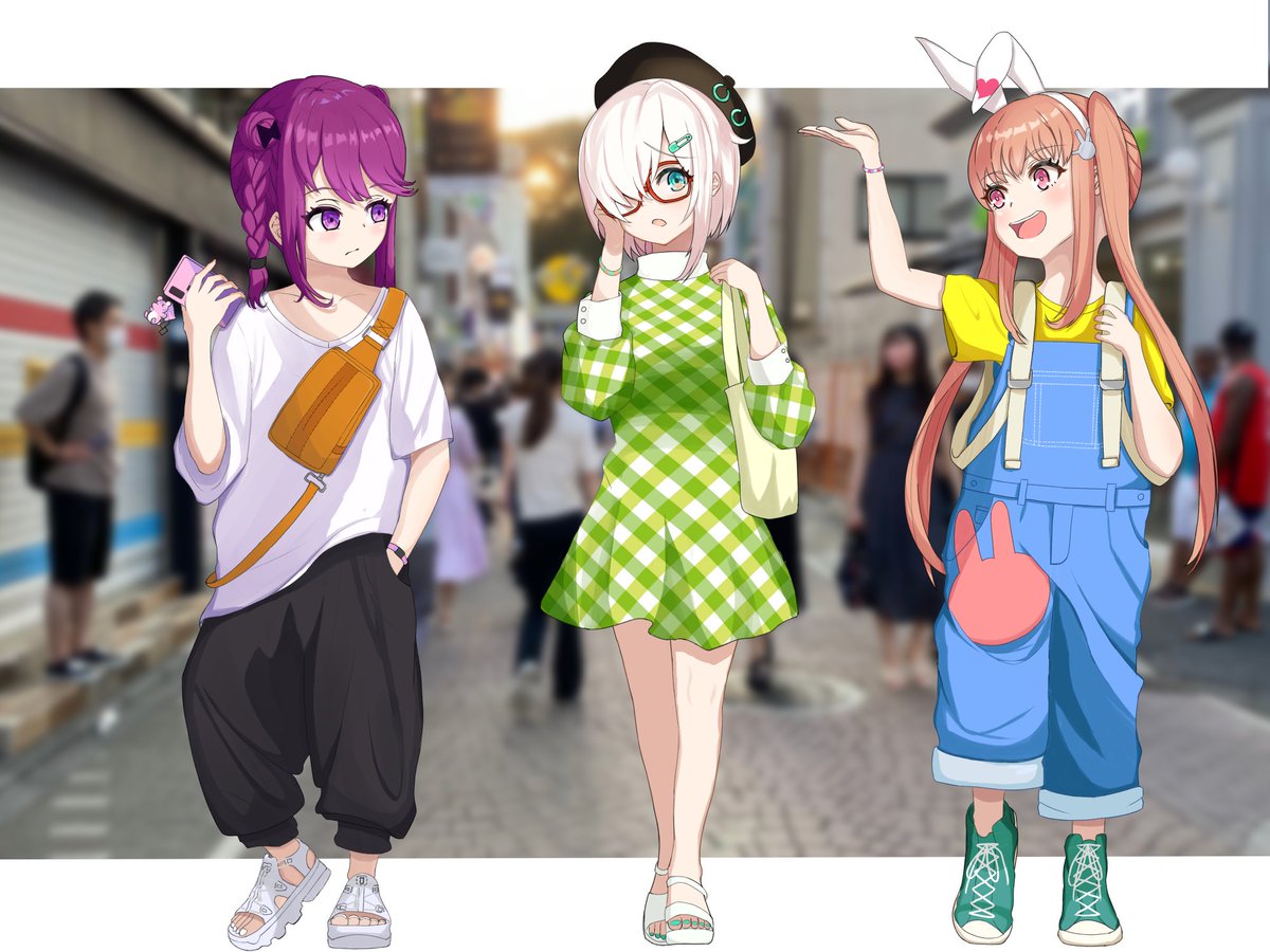 ハラジュク3人!今までのをまとめて少し修正して背景つけた。 #電音部 #電音部美術部
