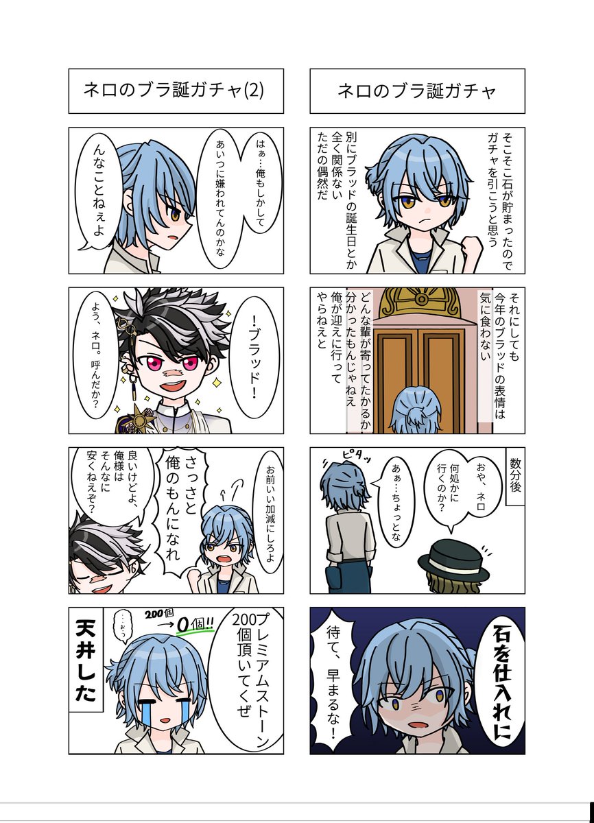 ブラ誕ガチャで爆死するネロくんの四コマ。 誕生日おめでとうございますボス! #ブラッドリー誕生祭2021 #ブラッドリー生誕祭2021 #まほやく_FA