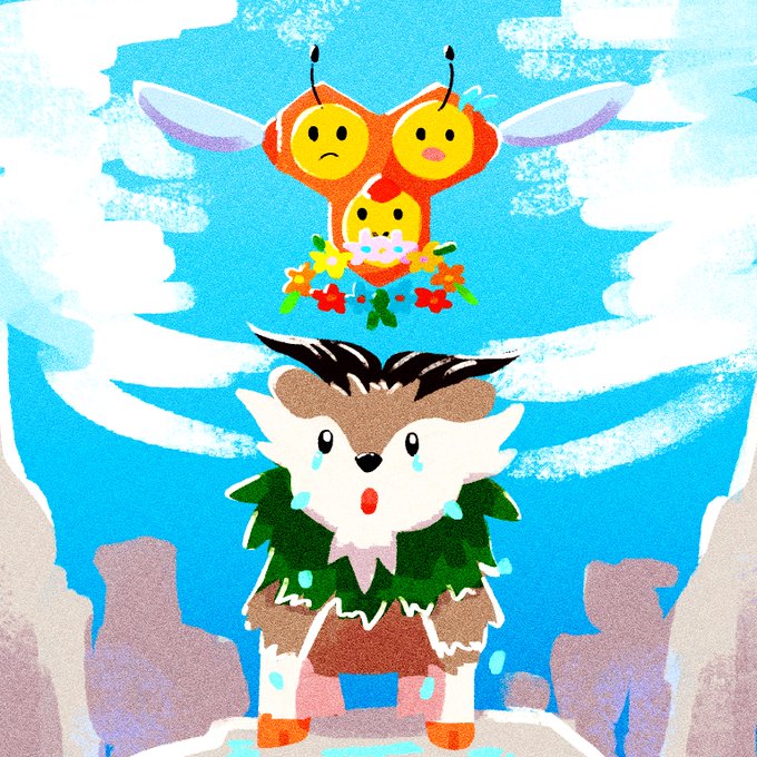 5 42 #ポケモン版深夜の真剣お絵描き60分一本勝負 #イラスト 迷子のメェークルとミツハニー 初めて参加したけど楽しかったです( ¨̮ ) 22/01/23 23:00
