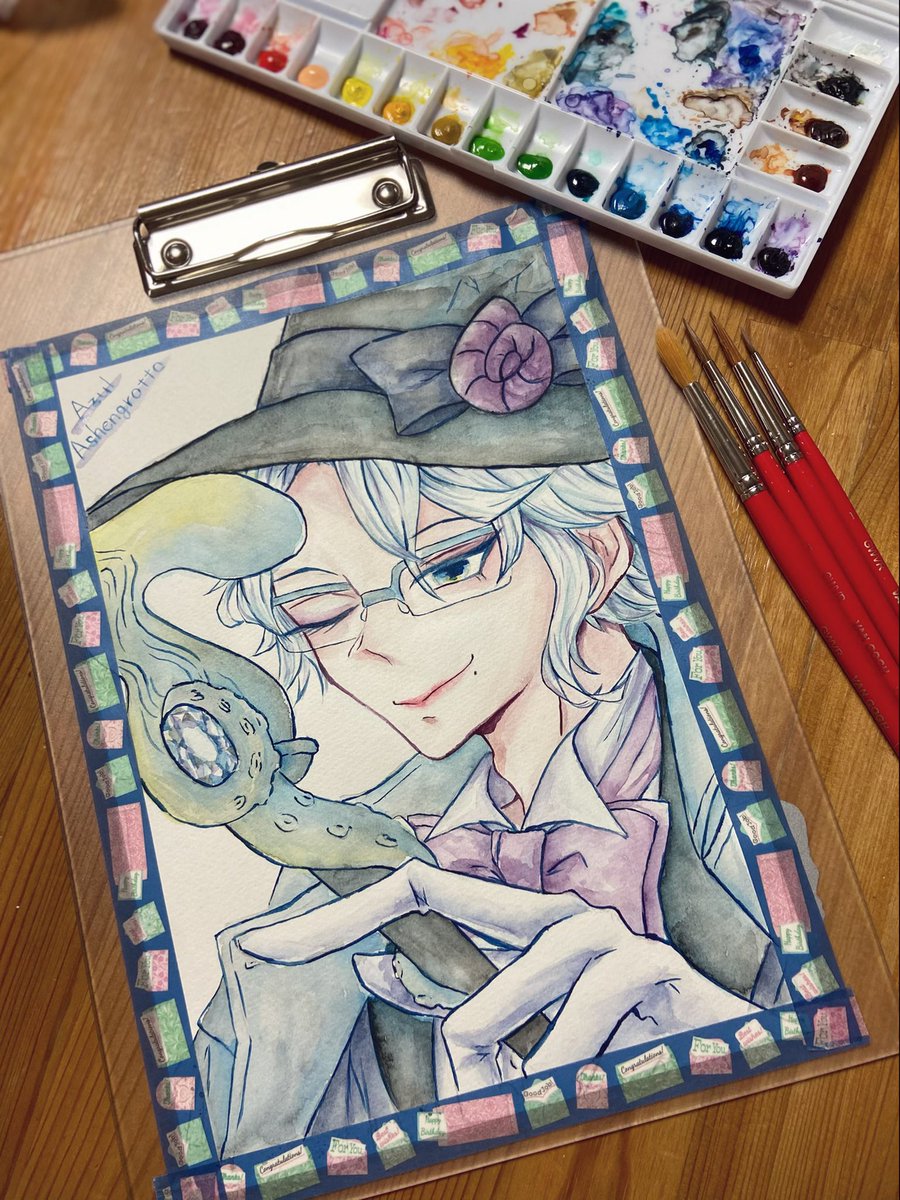 0 12 水彩でアズくん #ツイステファンアート 21/02/09 20:48