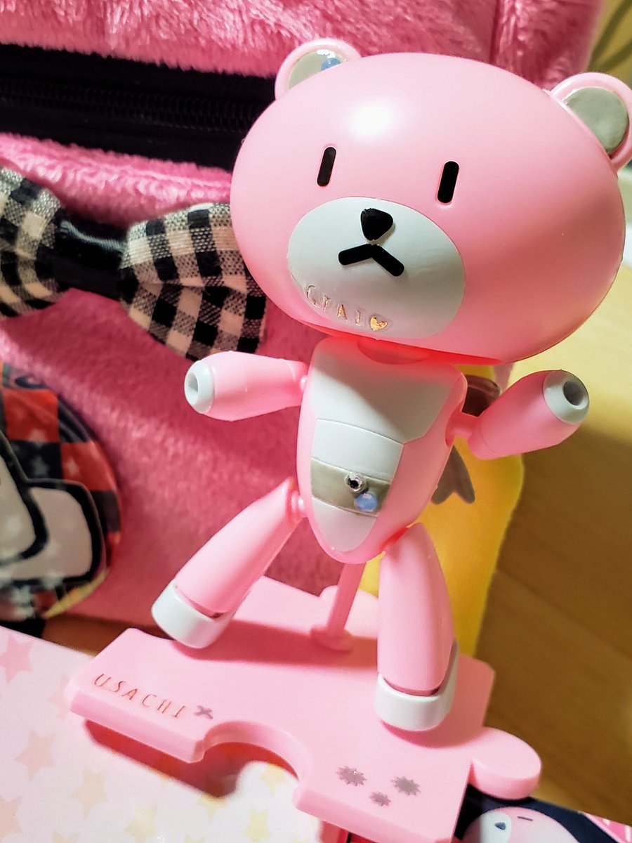 プチッガイをプチデコしてみたよ(*´∇`)ノうさ、専門的な道具ニッパーと紙ヤスリ(寄付w)しかないから、後はネイルアートの材料だけ♥ ストーン付けたりお顔寂しいからお口つけたりチーム名入れたり(笑) 素人はこれだからw #ガンプラ集団X絶対零度 #GTAZ #ガンプラ #ピンクのプッチガイ